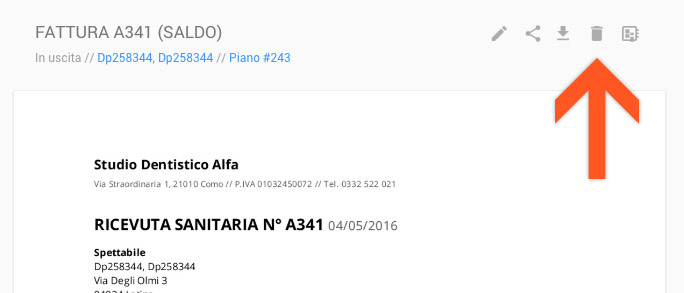 Se si desidera eliminare una fattura, aprirla e cliccare sul pulsante “Elimina fattura”, in alto a destra.