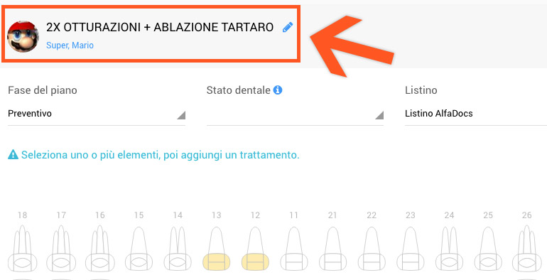 Il nome dei piani di trattamento può essere modificato. Questo è utile per distinguere rapidamente un piano dall'altro, a seconda del trattamento. Su Gestione => Piani, selezionare il piano di cui si intende modificare il nome. Nella pagina del piano, cliccare sulla matita alla destra del nome.
