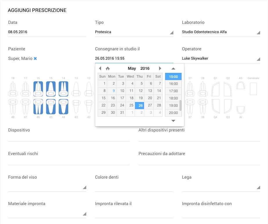 - Prescrizioni per laboratorio odontotecnico