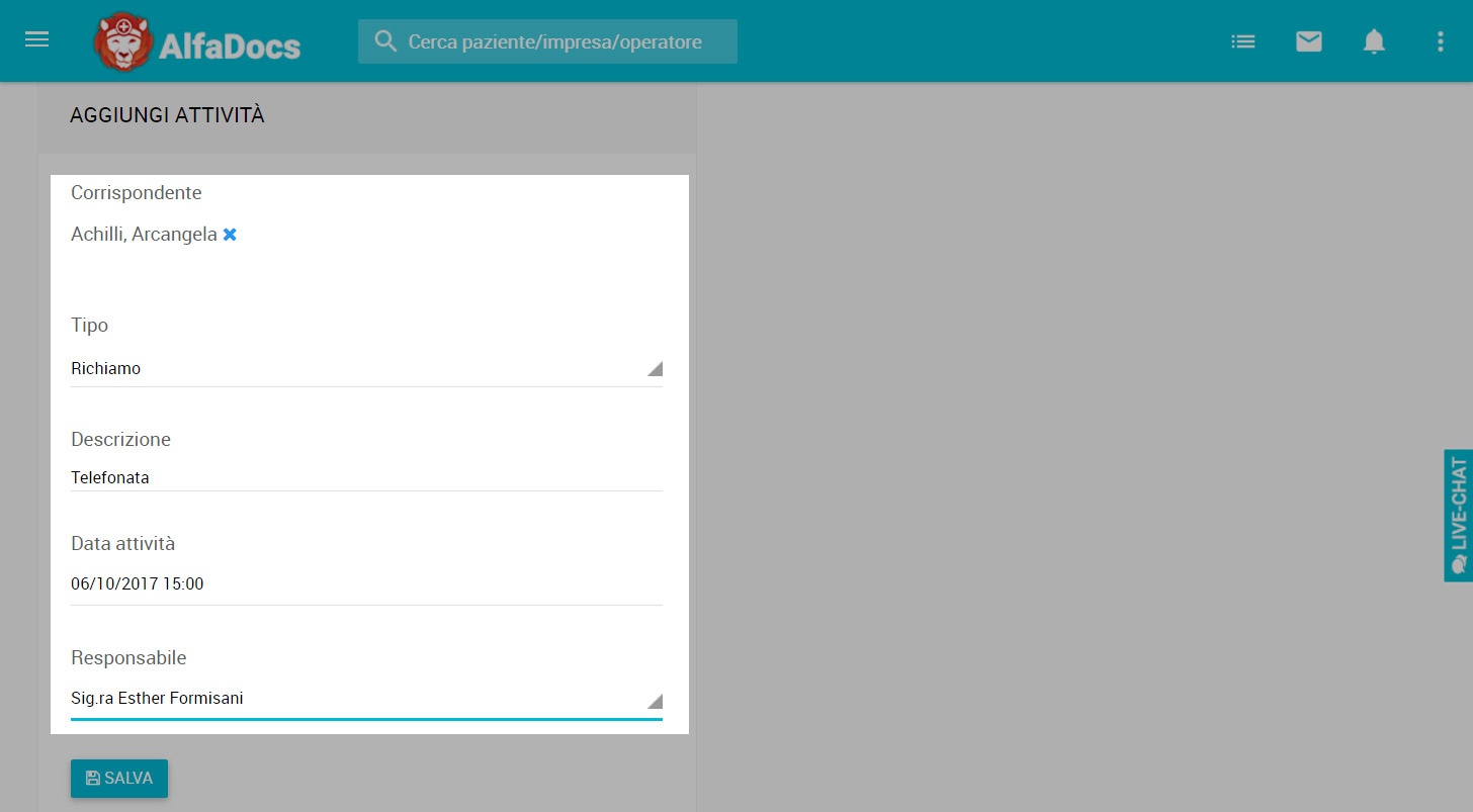 Ora è possibile assegnare un operatore responsabile ad ogni attività da eseguire. Il software manderà in automatico dei promemoria per ricordare l'attività all'operatore responsabile.