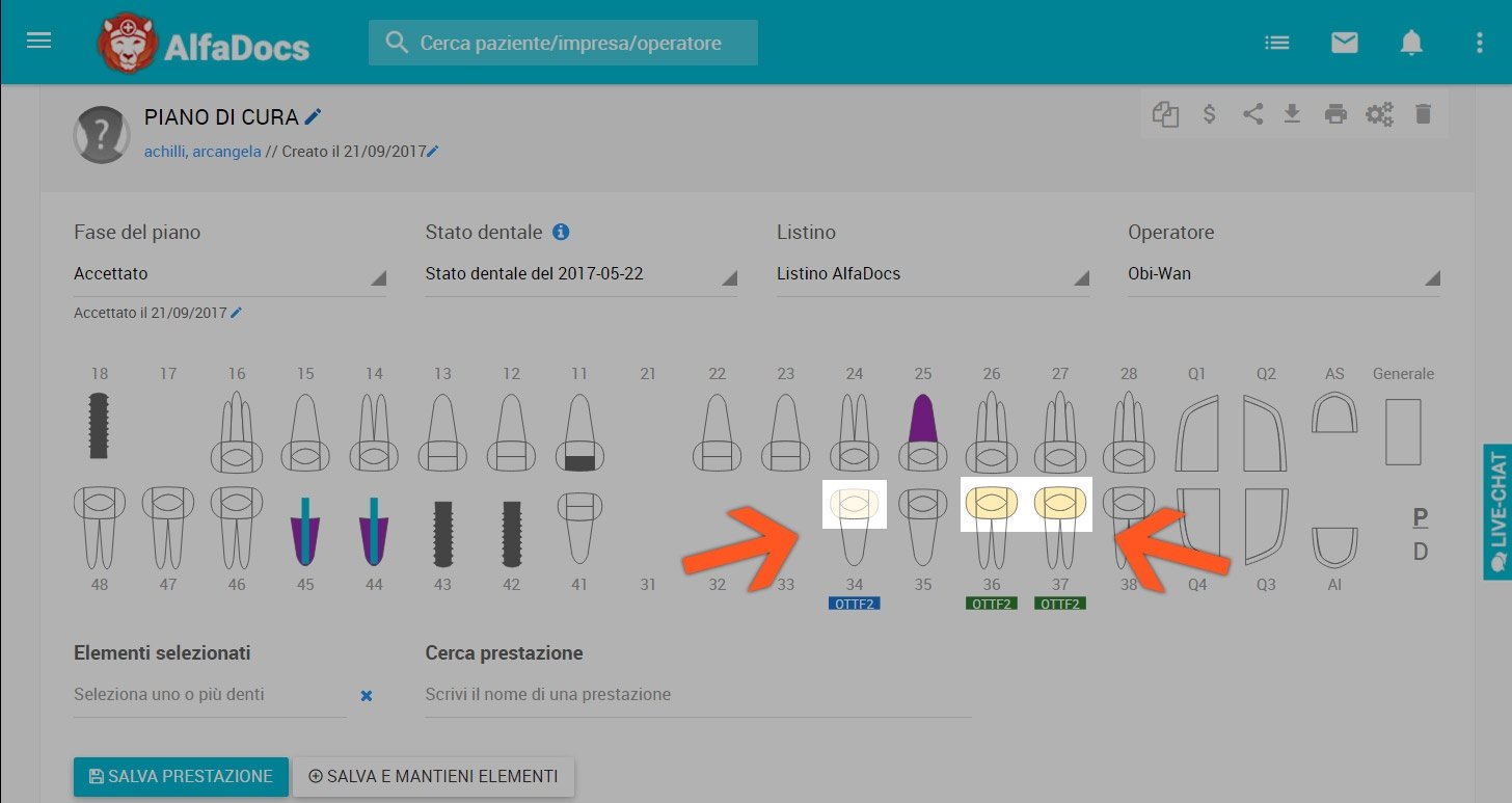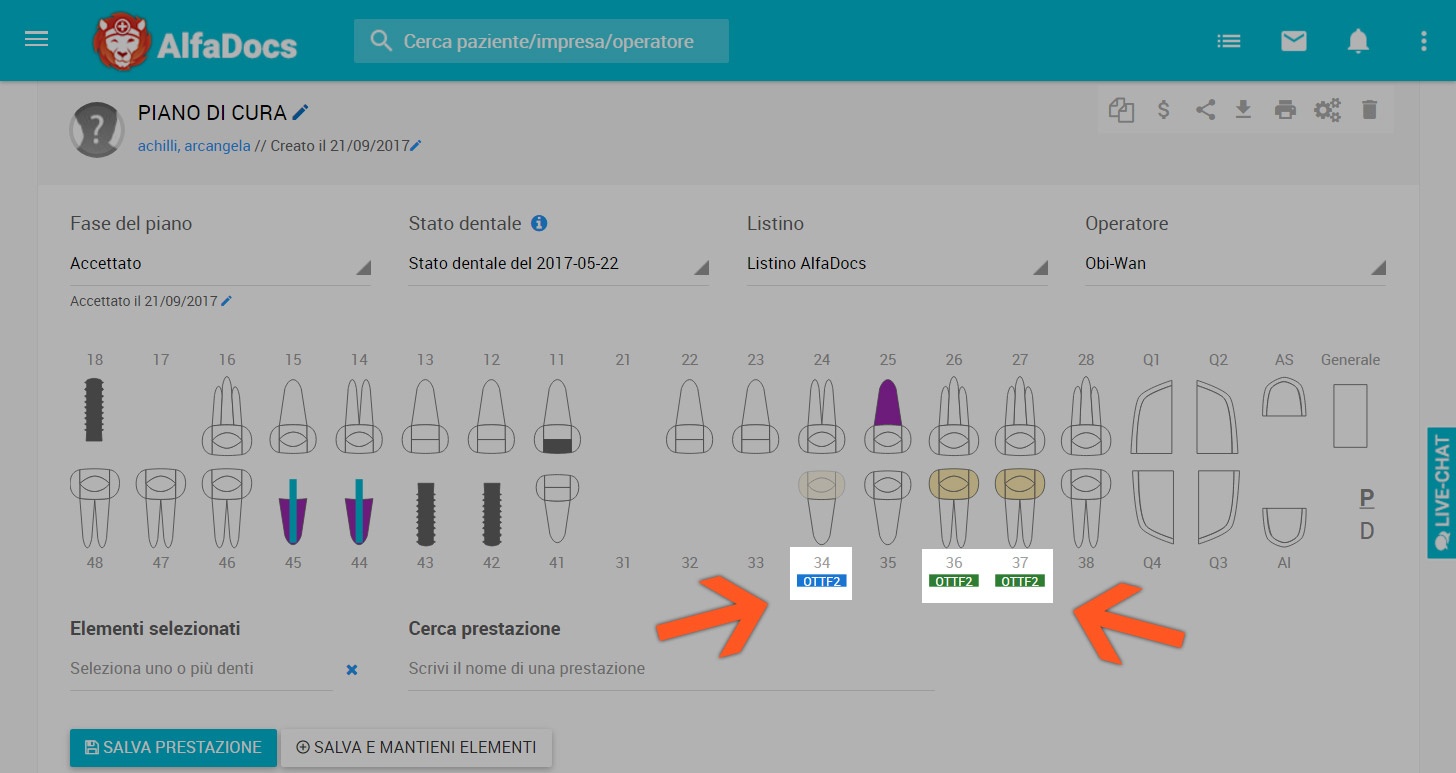 In più la grafica dell’odontogramma presenterà l’elemento colorato quando sarà eseguito, mentre quello da eseguire viene presentato in opaca.