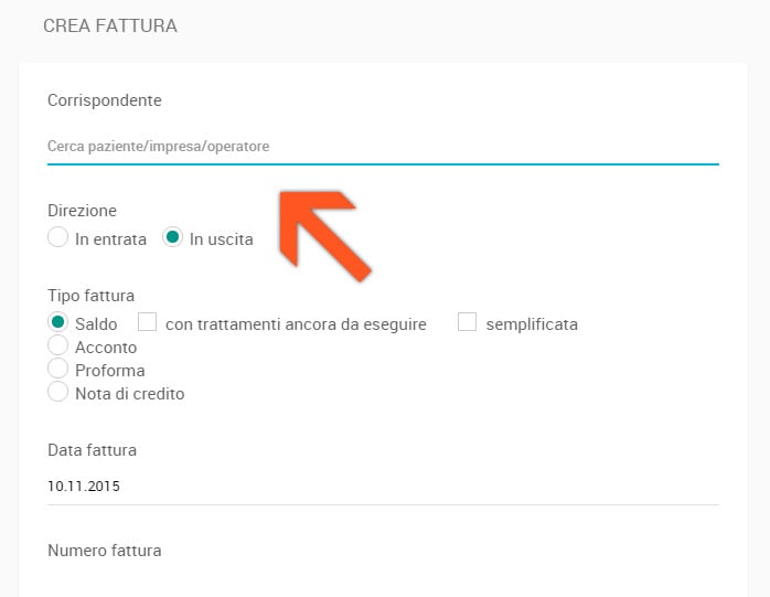Il sistema di fatturazione diventa più completo, con l’aggiunta delle fatture, sia in entrata che in uscita, verso Operatori e Imprese. Quando crei una nuova fattura, puoi selezionare il corrispondente direttamente nella barra di ricerca, sia esso un Paziente, un Operatore o un’Impresa.
