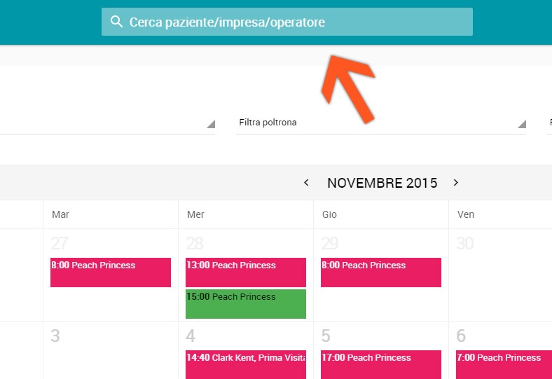 Quando utilizzi la barra di ricerca (la lente di ingrandimento nel menù in alto a destra), puoi adesso effettuare la ricerca sia per Paziente, sia per Impresa e Operatore. Un’unica barra di ricerca, quindi, per muoversi velocemente all’interno del database.