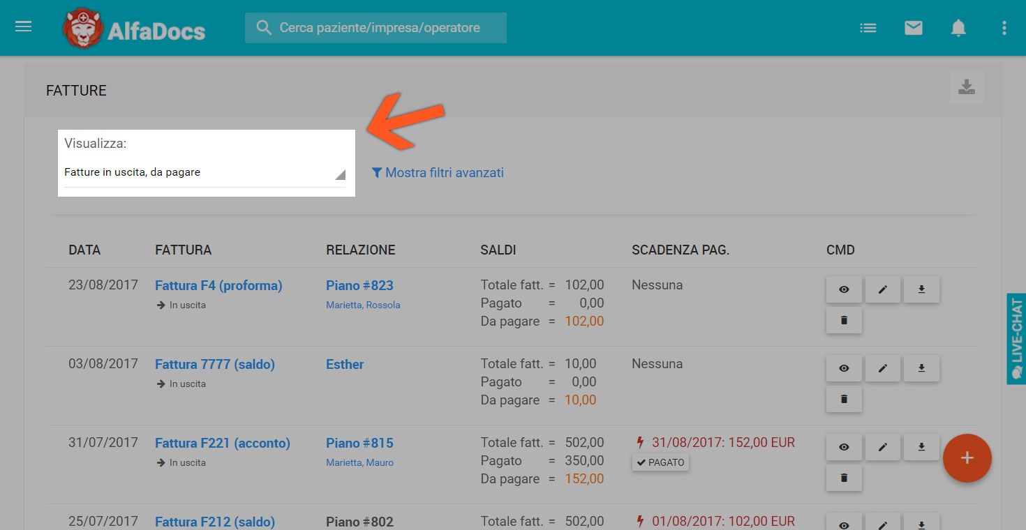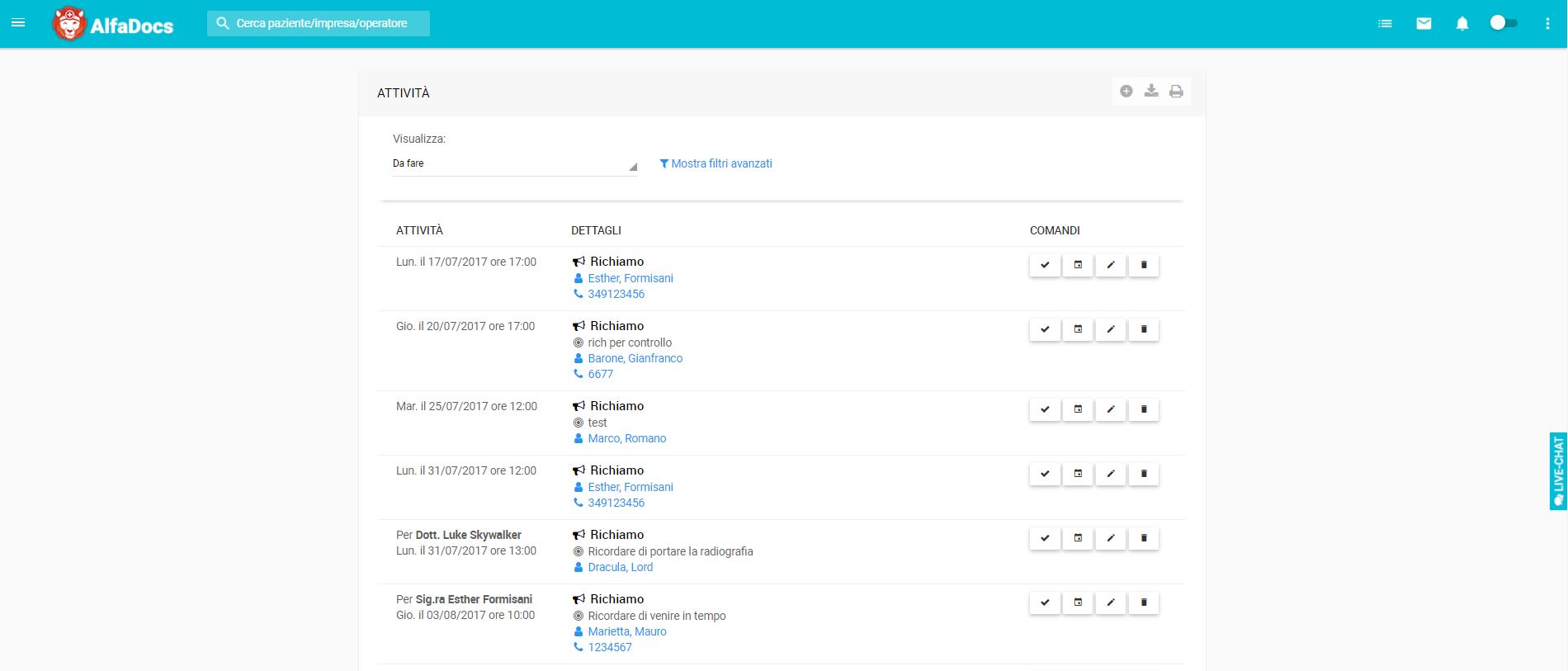 La gestione digitale delle scadenze attraverso un gestionale moderno come AlfaDocs è rapida e puntuale: basta inserire la scadenza e i dati del paziente e il sistema permetterà allo studio di tenere sotto controllo i clienti morosi e di non perdere di vista le dilazioni e i pagamenti.