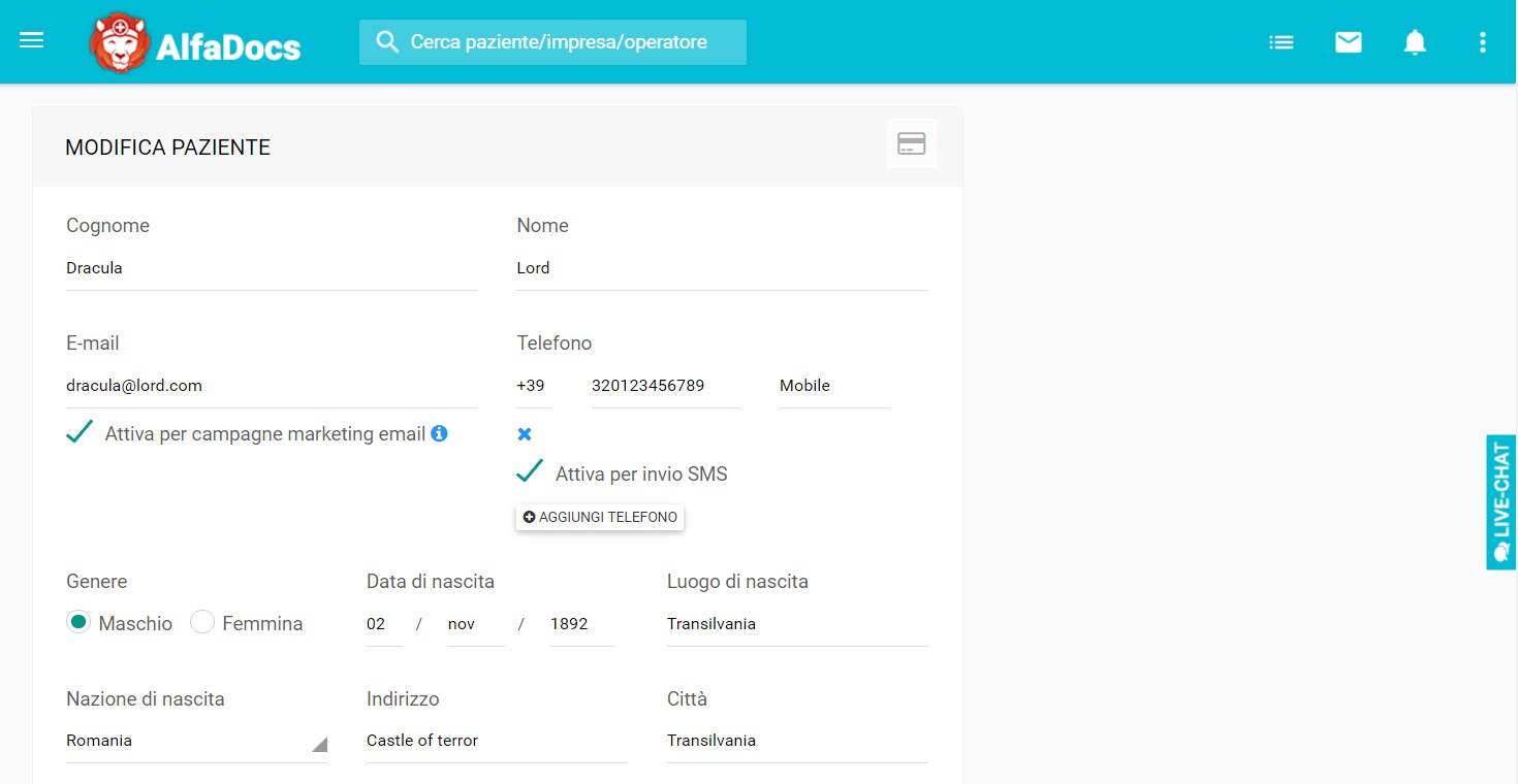 Anche i dati dei pazienti stessi possono essere inseriti nel software gestionale, riducendo a zero gli errori di compilazione delle ricevute, con estrema facilità di aggiornamento per indirizzi e numero di telefono in caso di informazioni mancanti.